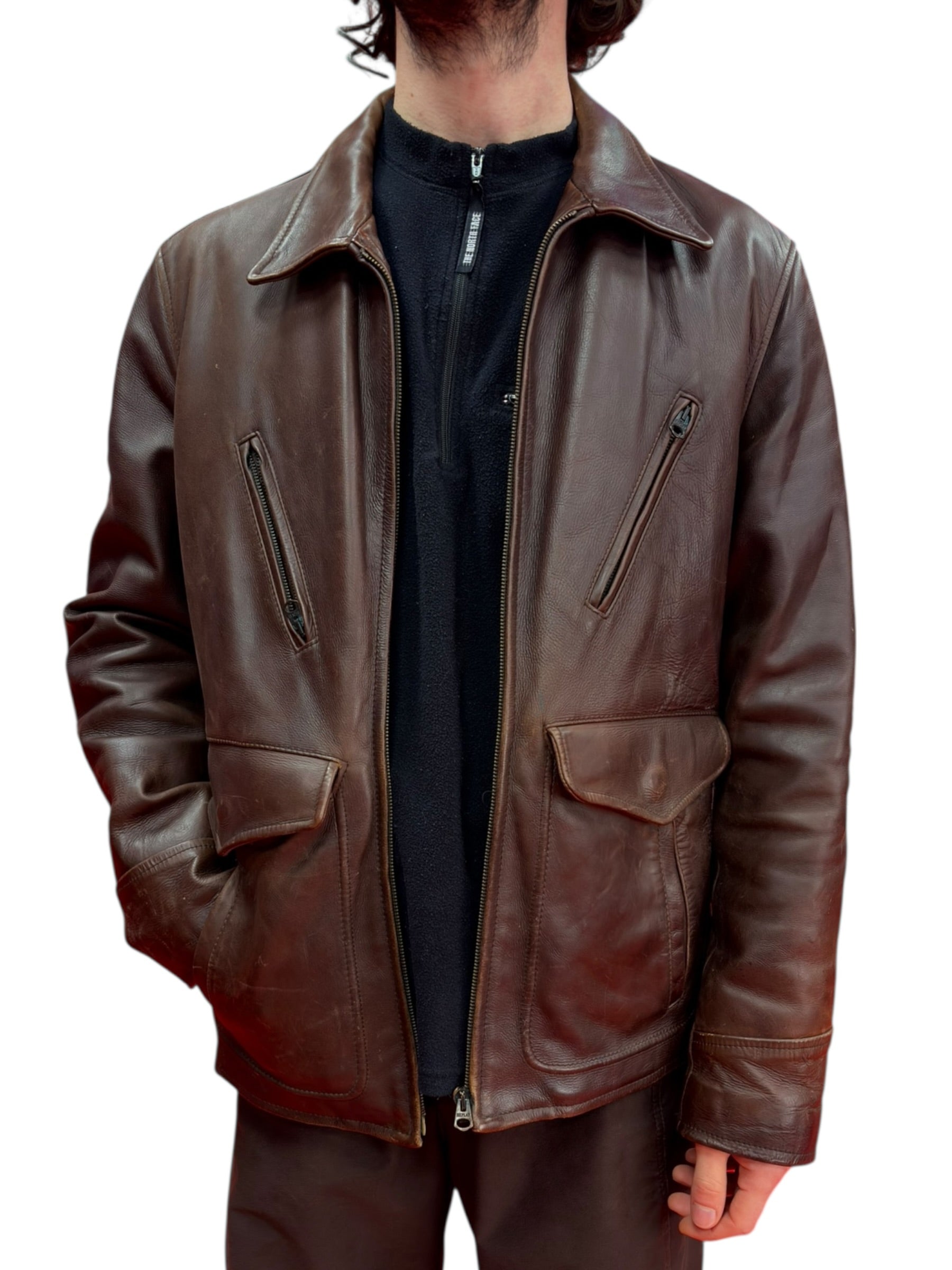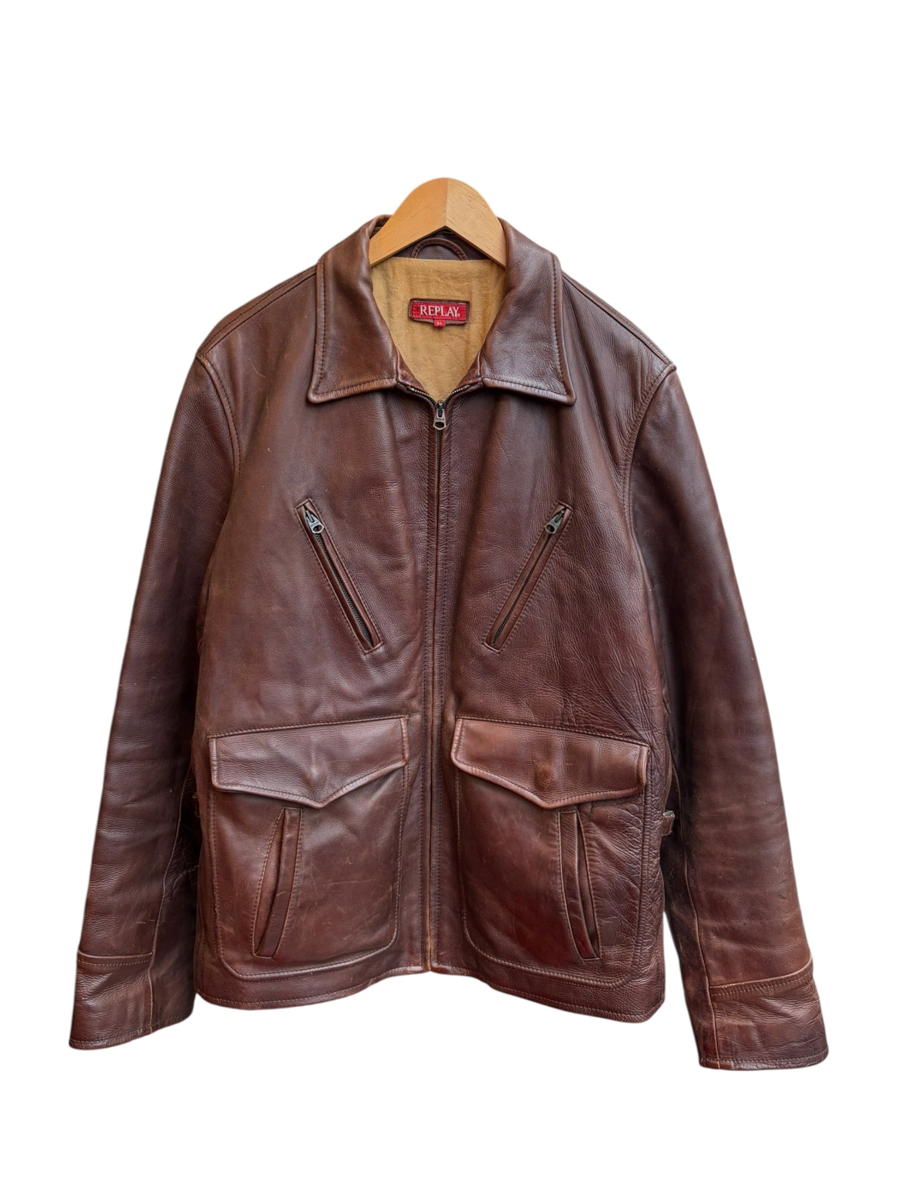 Giacca in vera pelle Replay | Taglia: L/XL | Colore: Marrone | Altezza modello: 1,76 cm | Buono stato (capo usato che potrebbe presentare imperfezioni, e/o segni di usura)